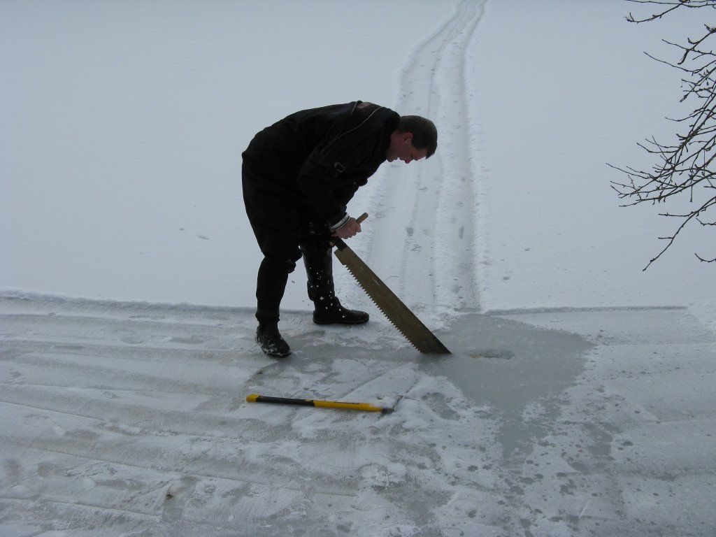 Hier noch der Hinweis, wenn sich große Äste auf der Eisfläche befinden, dann ist dieses eine Markierung einer Gefahrenstelle! Unbedingt Abstand halten!