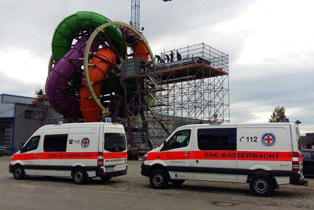 Am Samstag den 07.Oktober 2017 hatten zwei schwäbische Ortsgruppen der BRK Wasserwacht in Münsterhausen im Landkreis Günzburg die Möglichkeit an einer Weltneuheit eine Übung durchzuführen. In Zusammenarbeit mit den Herstellern Wiegand.Maelzer GmbH und Gerstlauer Amusement Rides GmbH konnte am Prototyp des SLIDEWHEEL, der ersten in sich drehenden Wasserrutsche in Form eines Riesenrades, die Rettung und Evakuierung von Personen geübt und diskutiert werden. Von den Einsatzkräften der Wasserwacht konnten wichtige Erfahrungen und Eindrücke an den Hersteller vermittelt werden, die in die Entwicklung des Prototyp mit einfliesen werden.